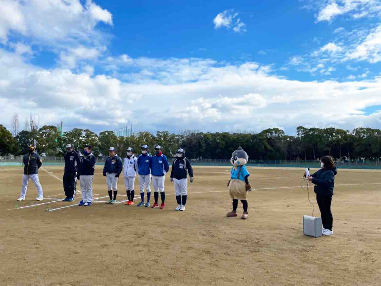 合宿の開催式ではサプライズ!?で、大阪のゆるキャラ「こがらん」が始球式を行いました🎵
