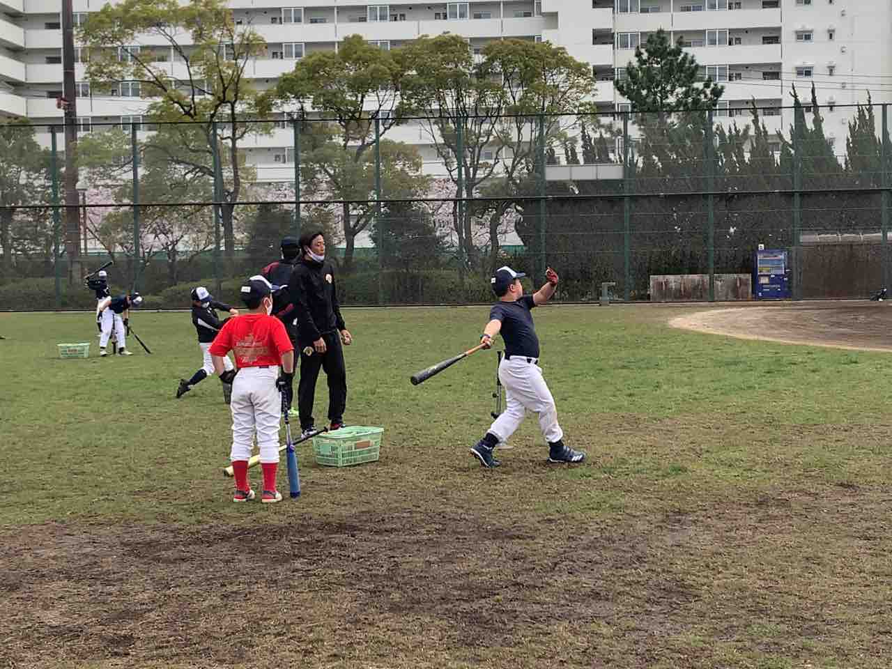 構えてから打つまでのバットのトップの位置や、体の回転など詳しい説明を受けていました。