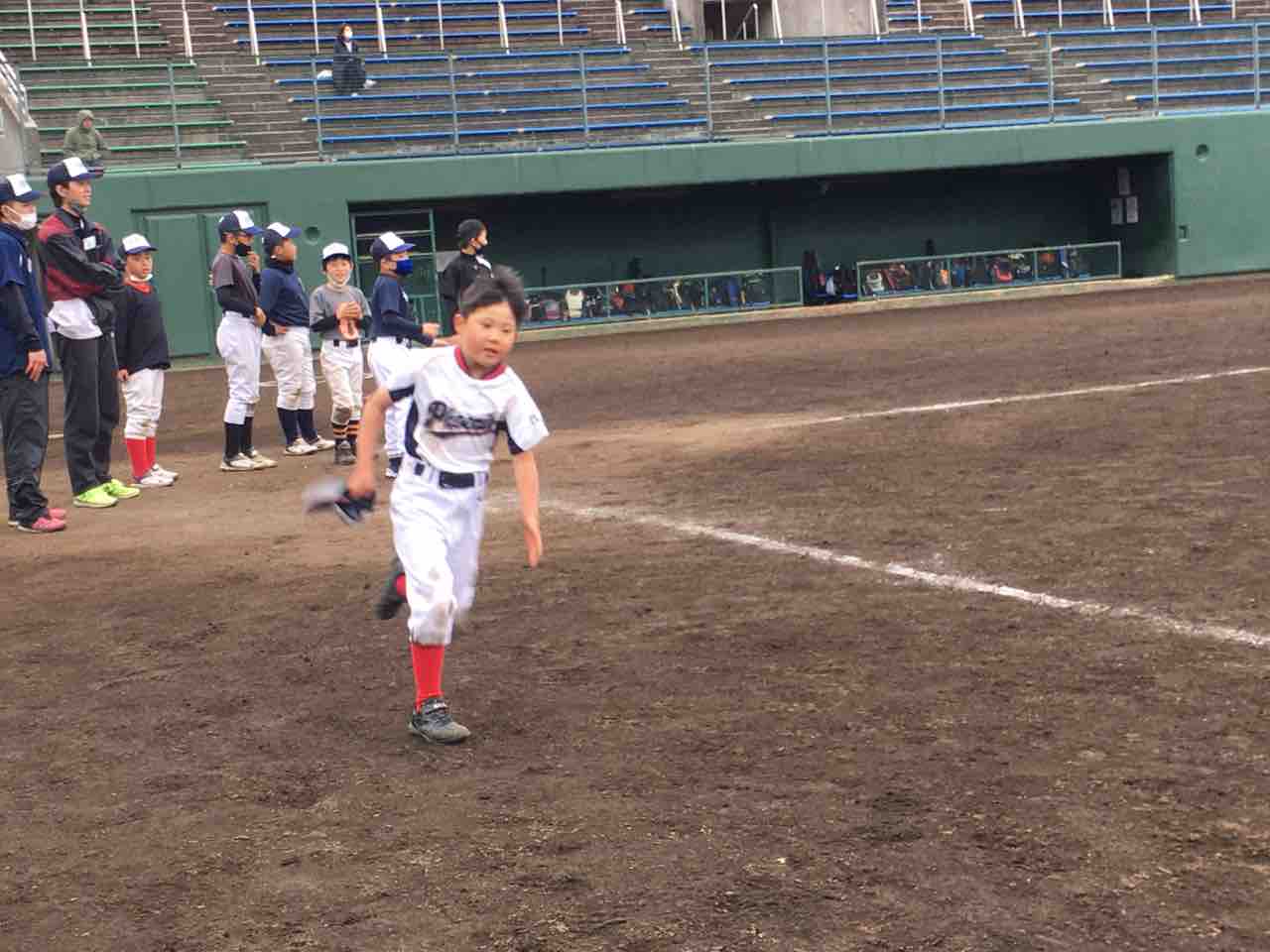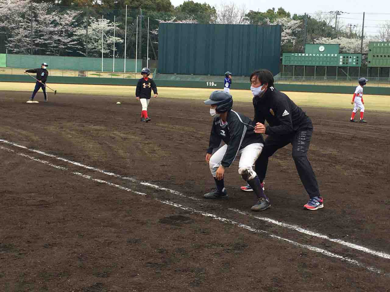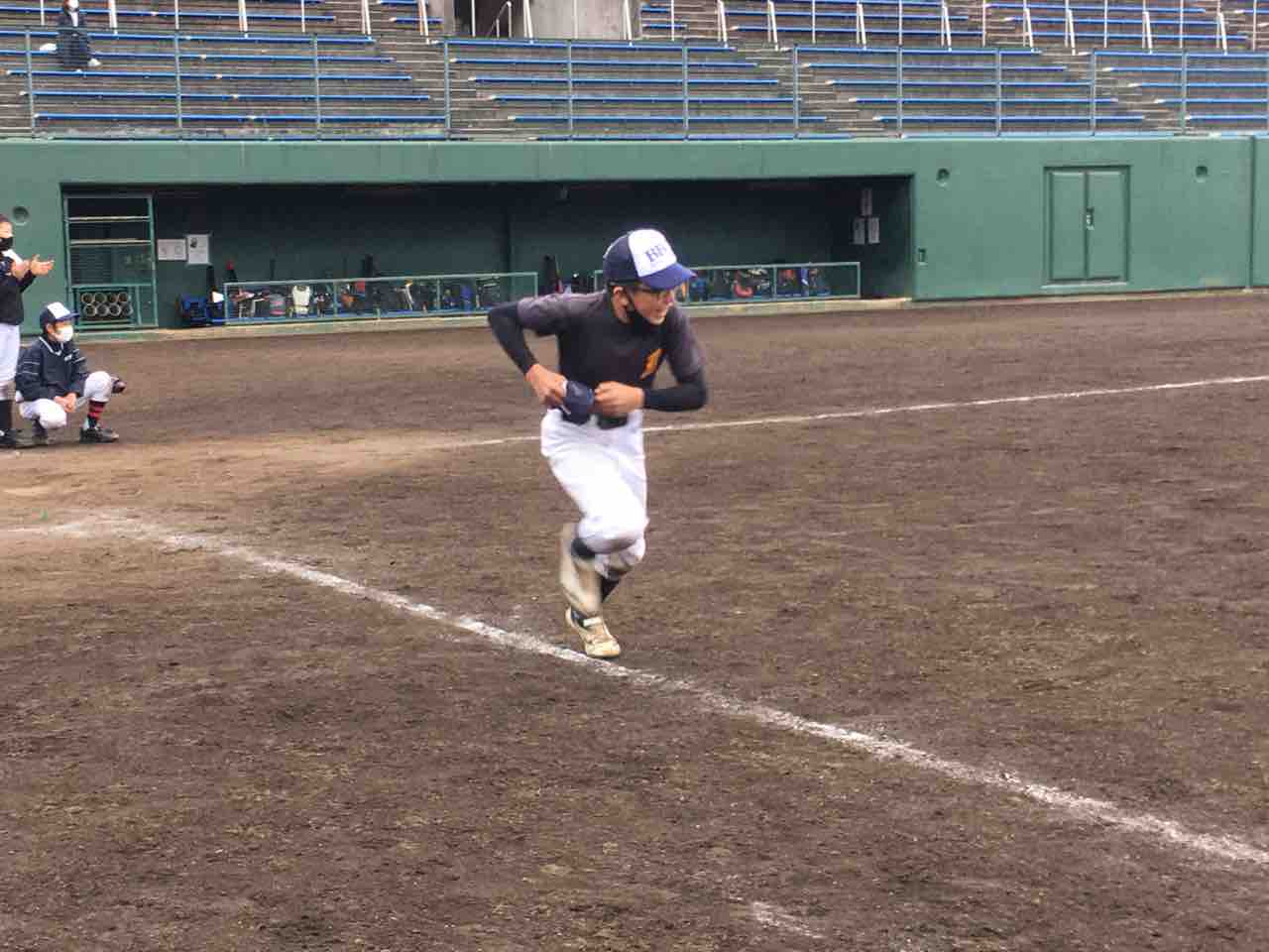 ベースランニング競争の最後には、優勝チームとコーチ陣によるエキシビジョンマッチも行われました!!