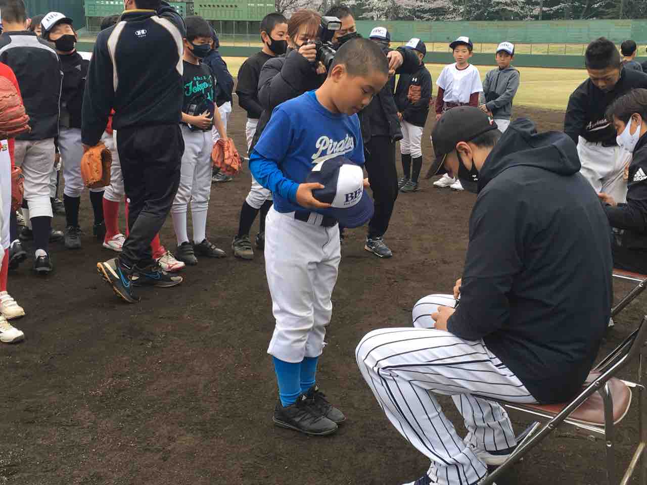 サインされた帽子やグラブを受け取り「やったー!」と飛び跳ねながら喜んでいる姿を見て、こちらも思わず笑顔になりました😊