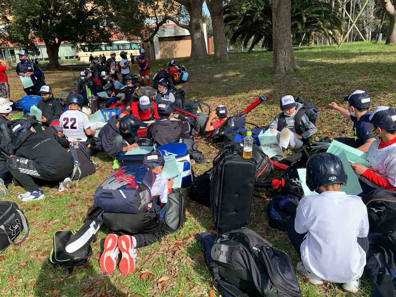 なぎさグラウンドを出発し、Bumbスポーツ文化館に戻り、解散式の前に野球合宿のカルテ記入✍