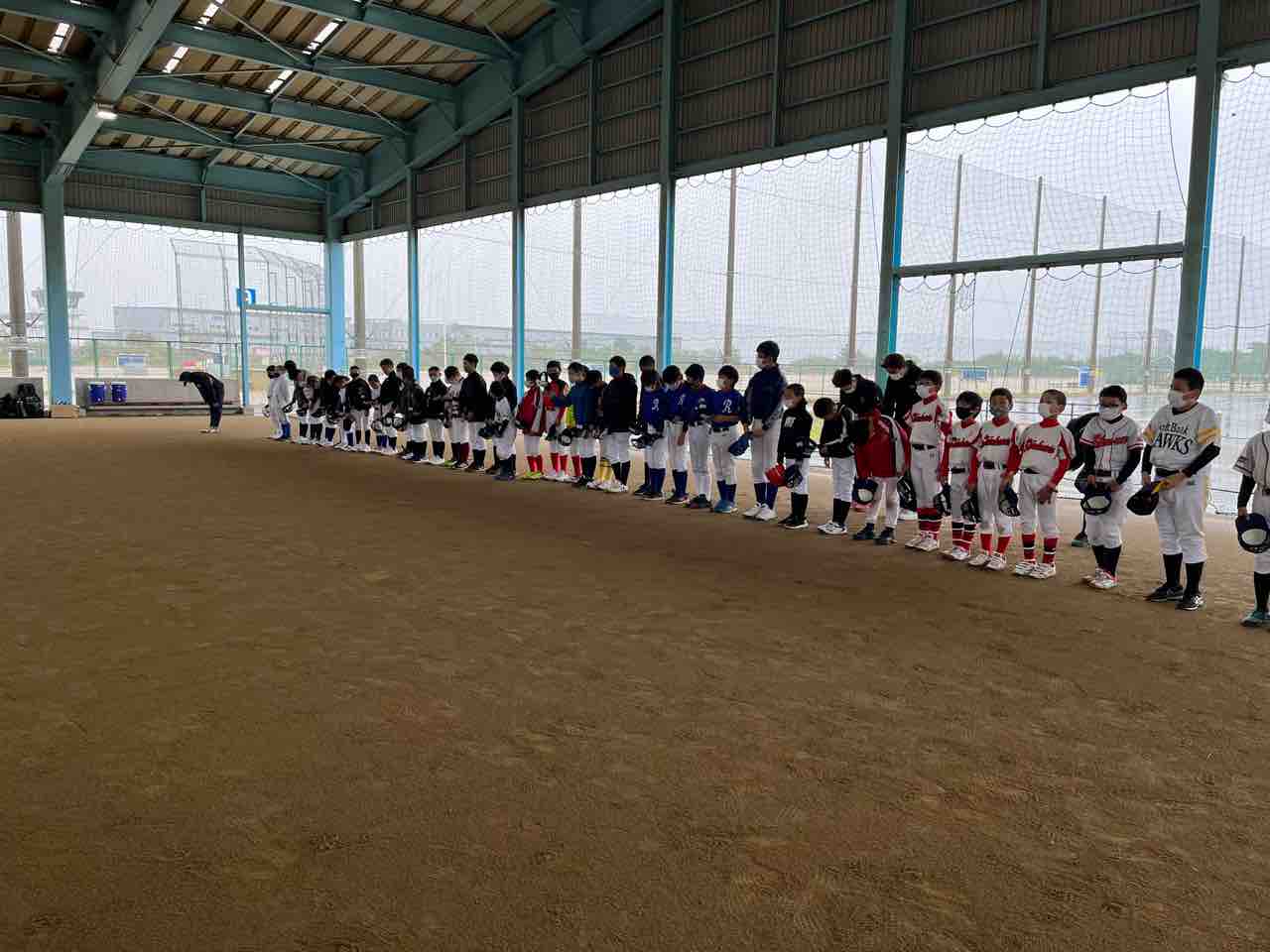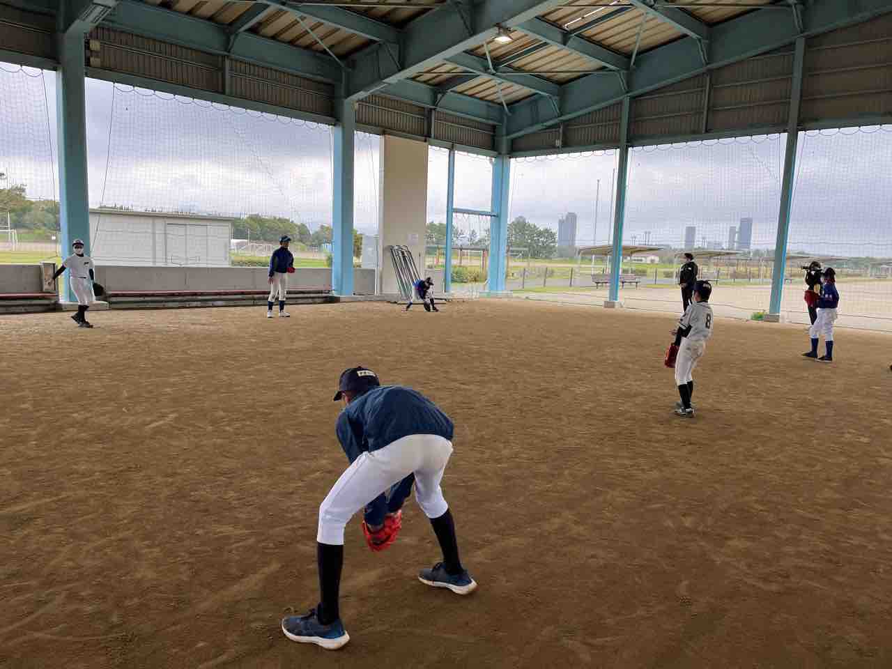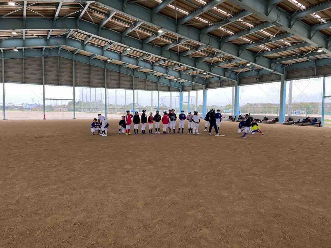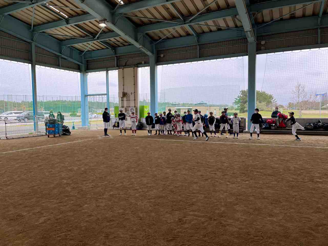我々スタッフは、早朝に宿舎を出発し、グランド状況を確認するも、やはり厳しい状態でした。また施設の方より、「終日使用不可」の通達を受け、残念ではありますが、屋根付きの練習場での活動となりました!