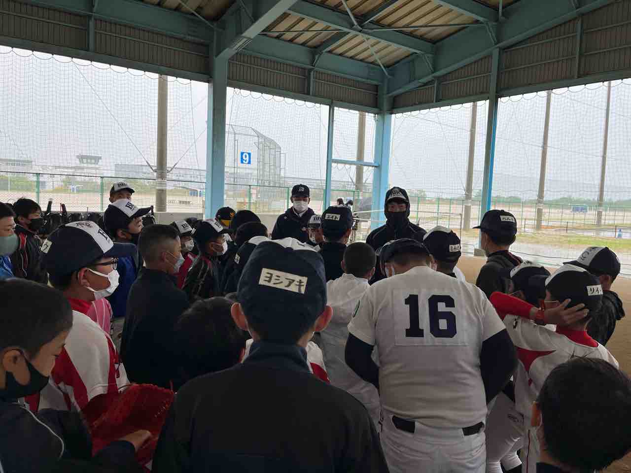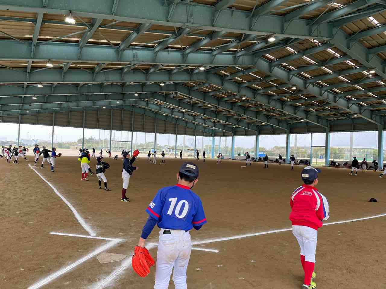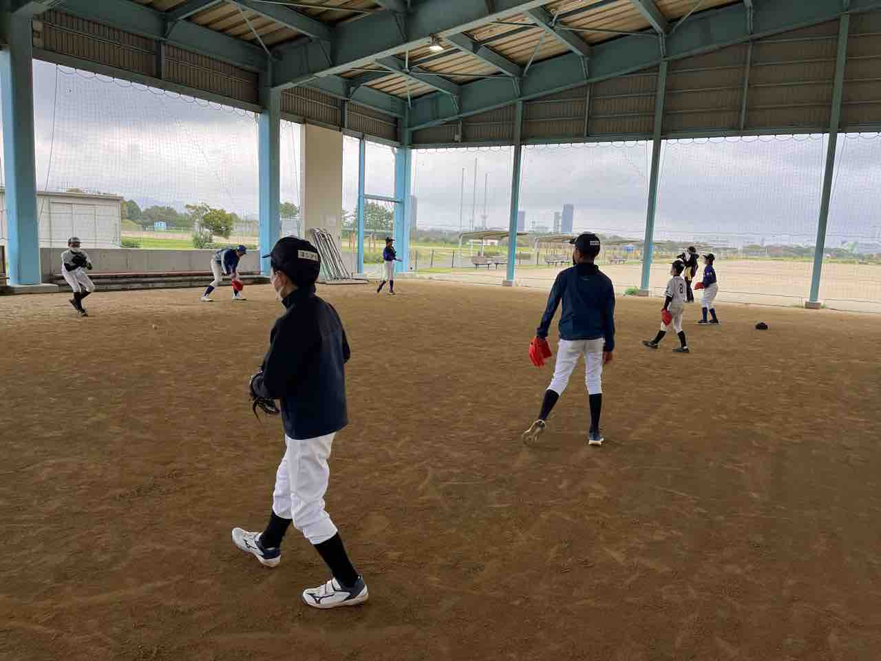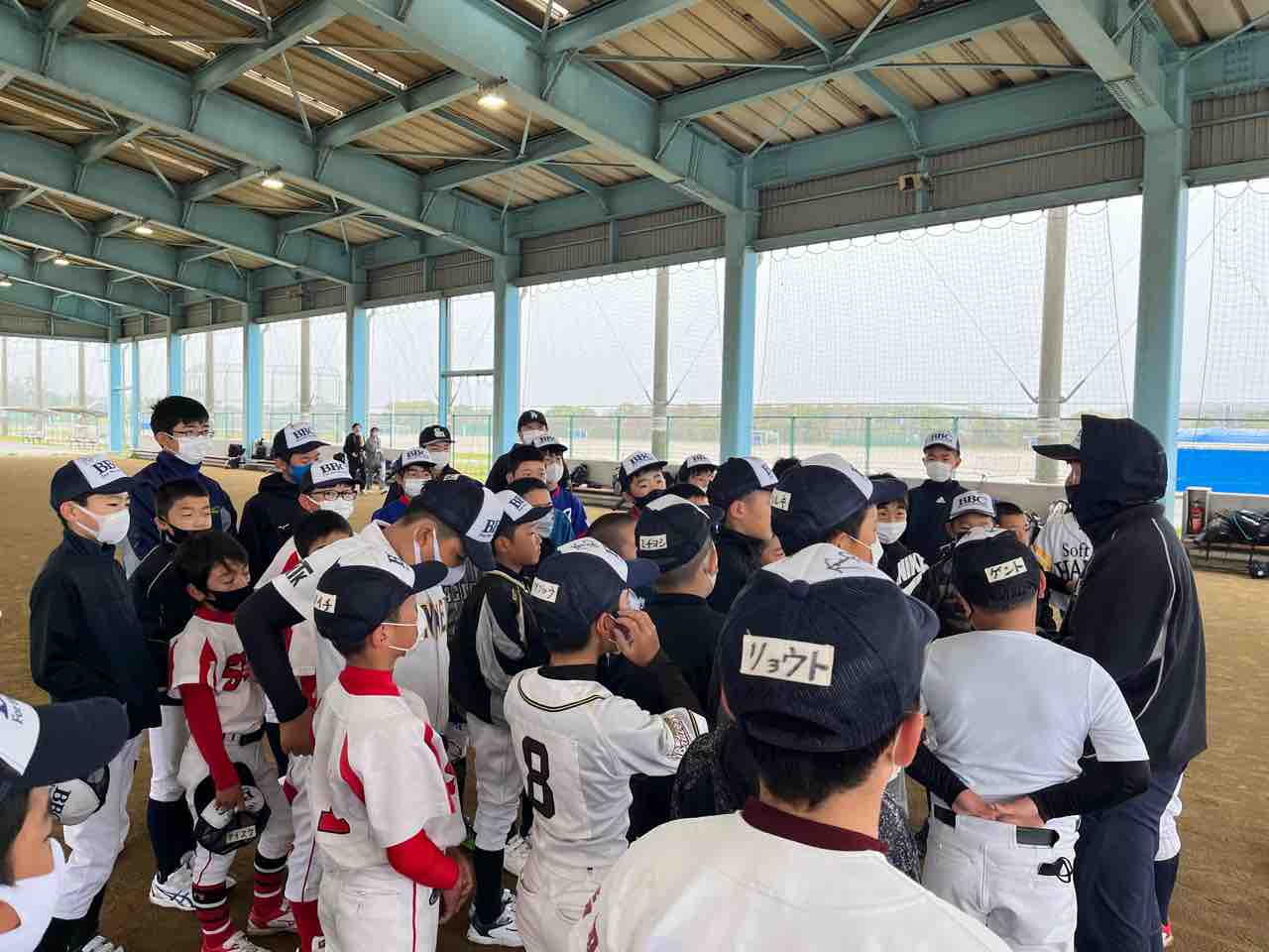 我々スタッフは、早朝に宿舎を出発し、グランド状況を確認するも、やはり厳しい状態でした。また施設の方より、「終日使用不可」の通達を受け、残念ではありますが、屋根付きの練習場での活動となりました!