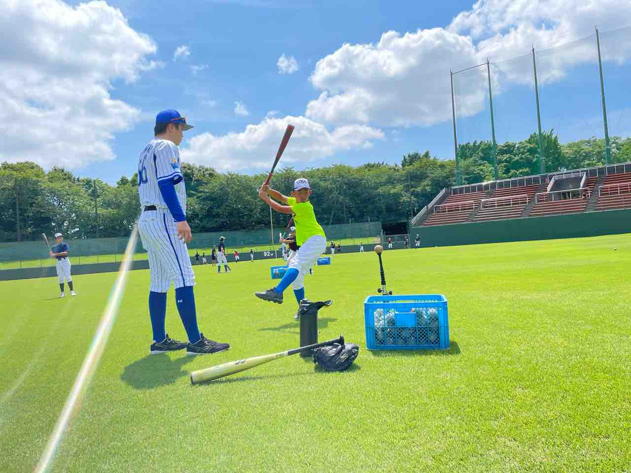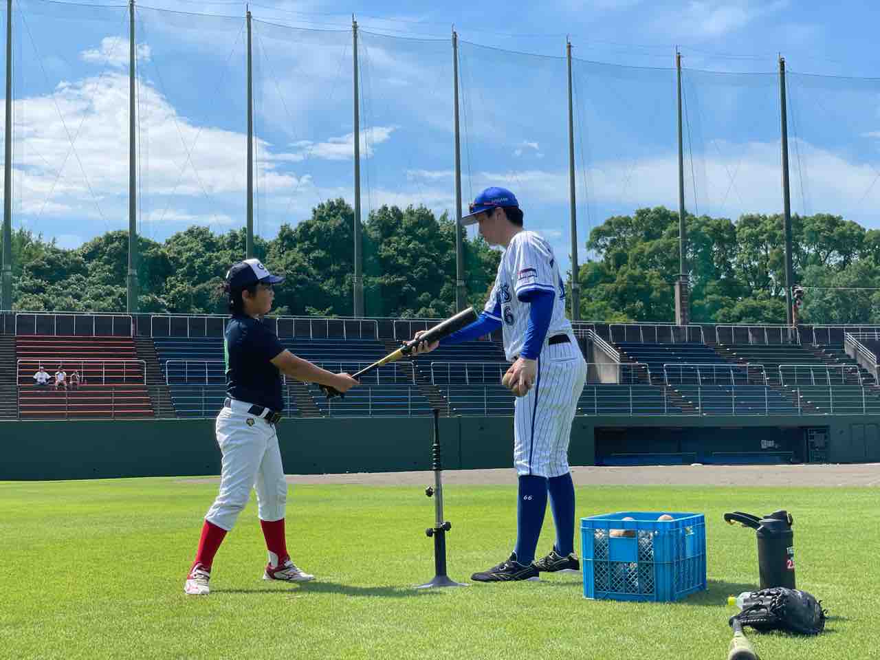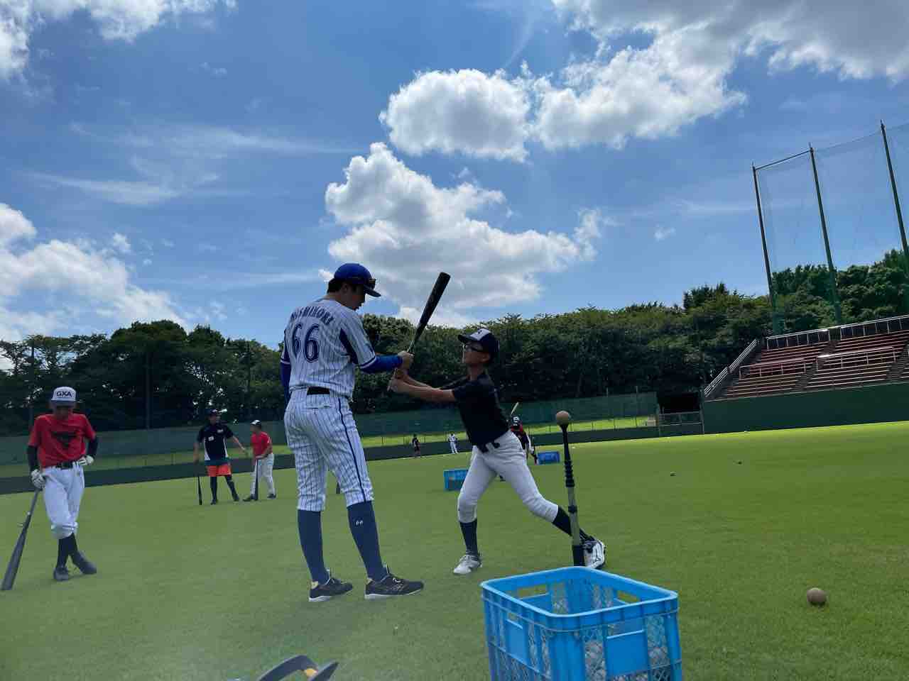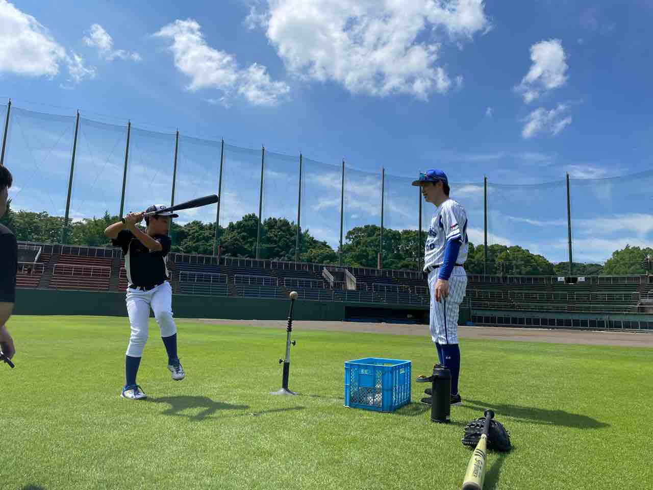 バッティングでは、とにかく遠くに飛ばして、沈みながら打つイメージでなど、一人ひとり丁寧にご指導いただきました。