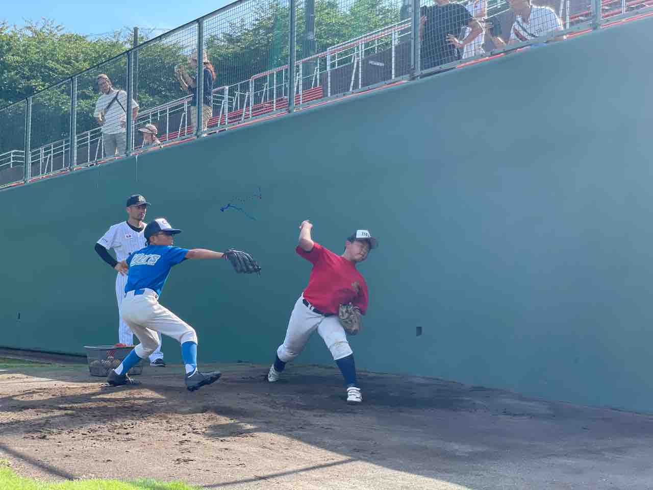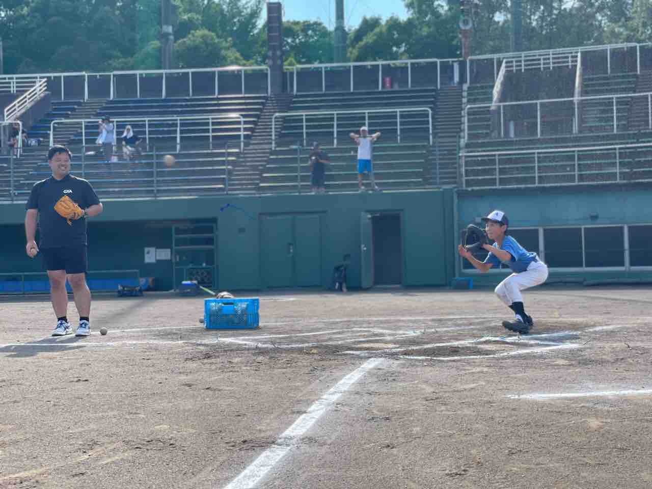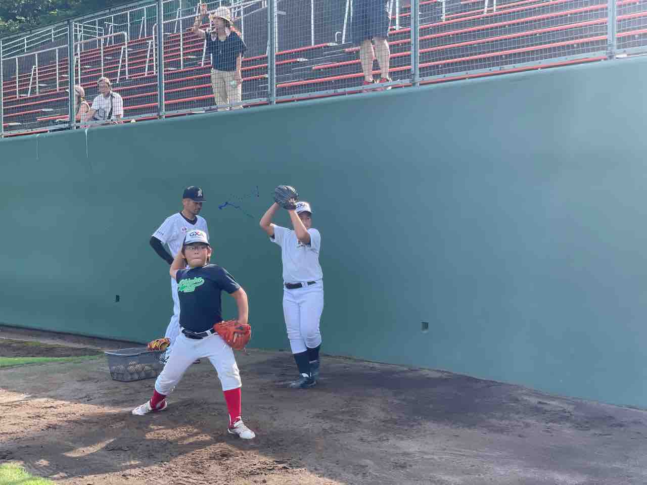 「投げる腕のトップの位置と、グラブの位置を意識しながら投げると強いボールが投げられるようになる」「投げる方向へグラブを向けて、胸を張って、投げる時にグラブを内側に引く」とのご指導をいただき、それぞれ意識しながら取り組みました。