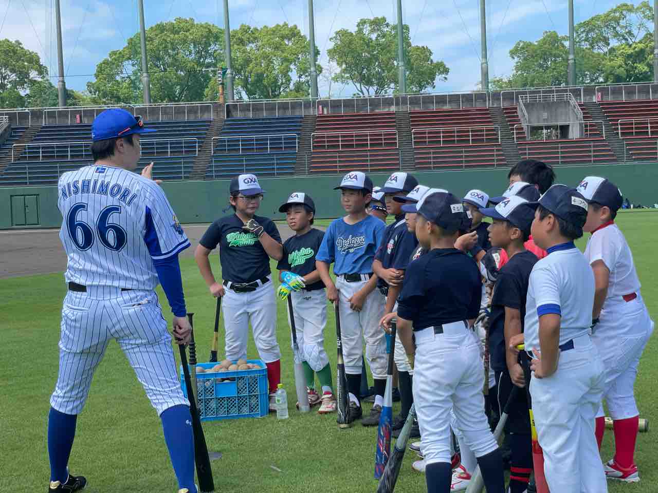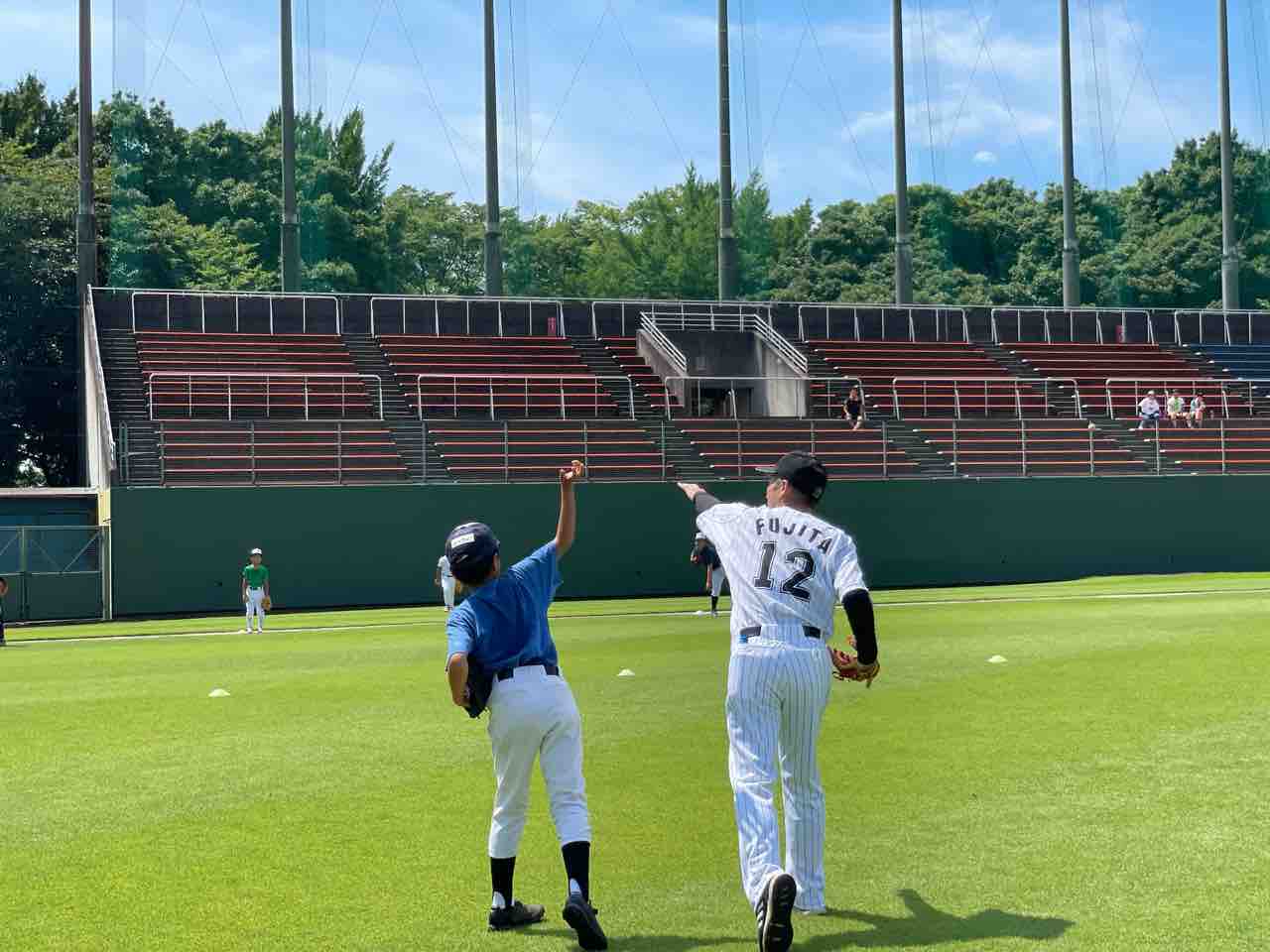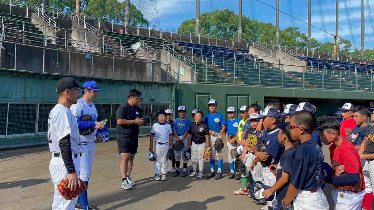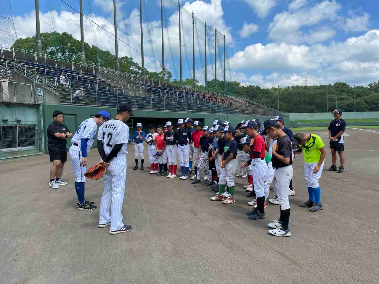 本日ご指導くださるのは、元千葉ロッテマリーンズの藤田宗一コーチと元横浜DeNAベイスターズの西森将司コーチです。