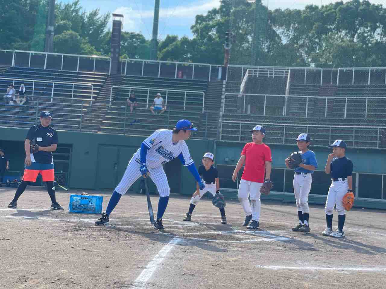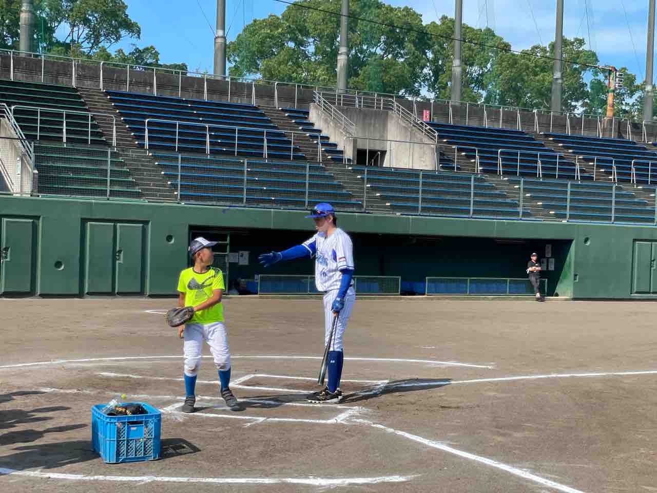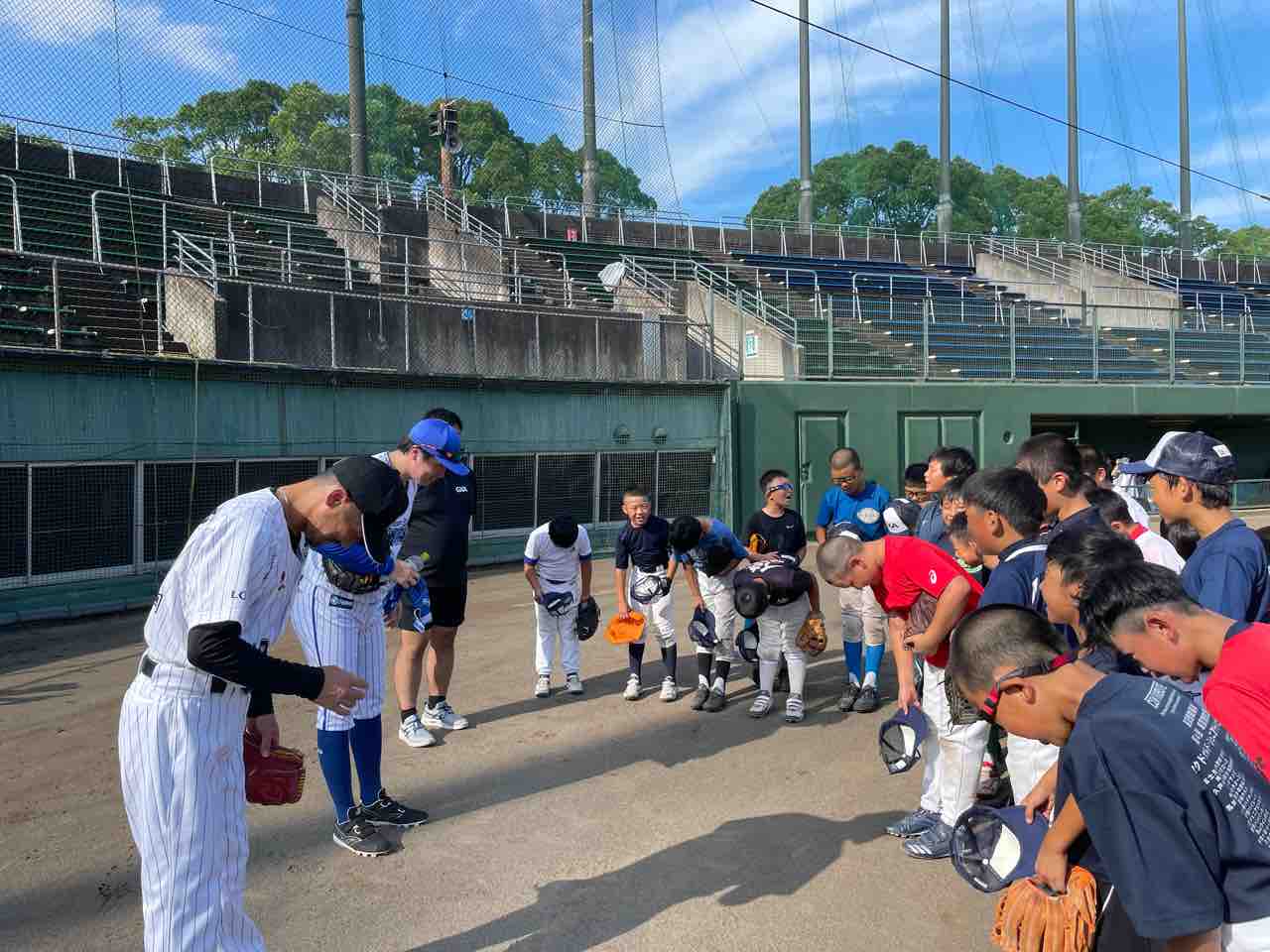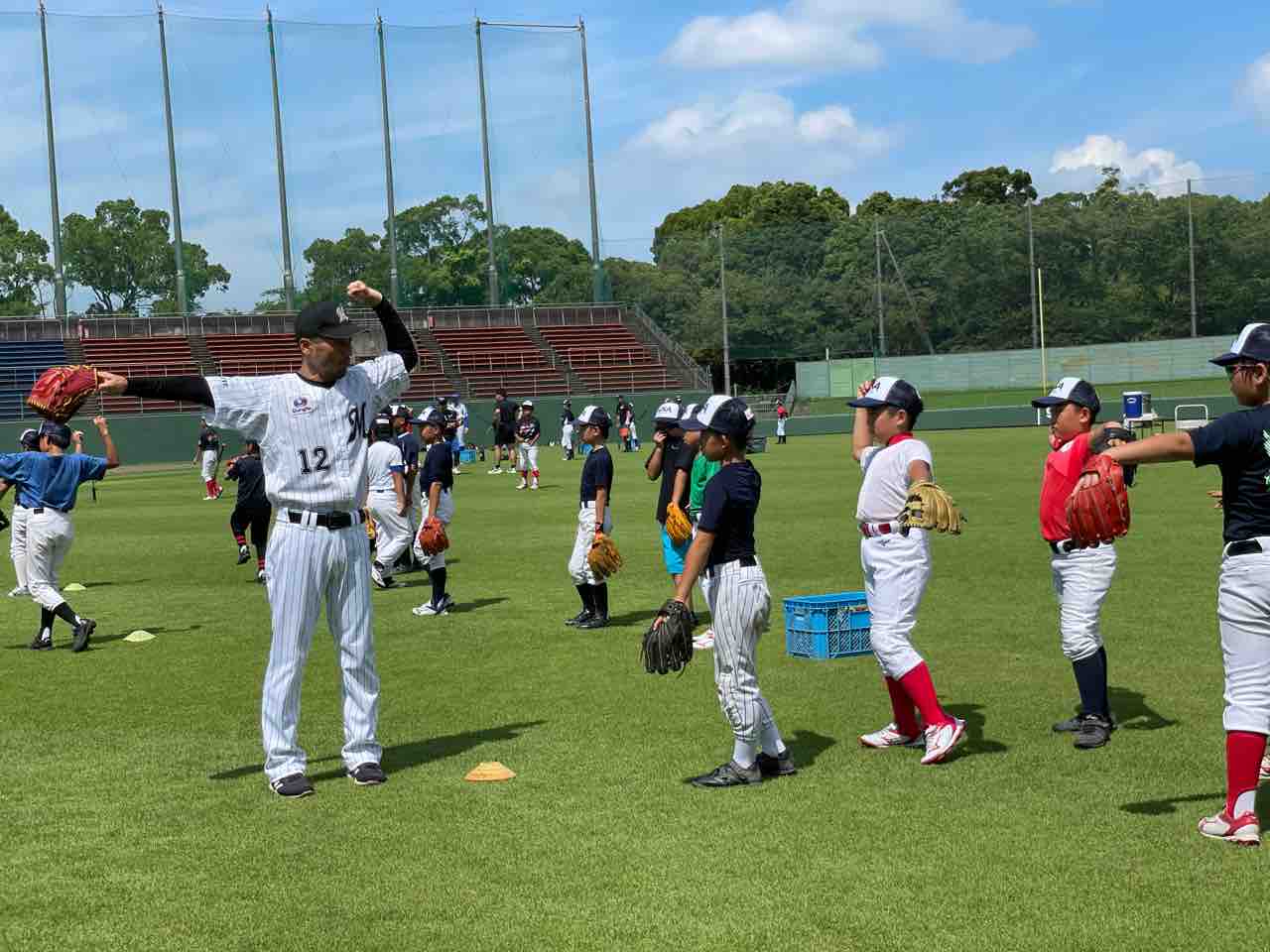 本日ご指導くださるのは、元千葉ロッテマリーンズの藤田宗一コーチと元横浜DeNAベイスターズの西森将司コーチです。