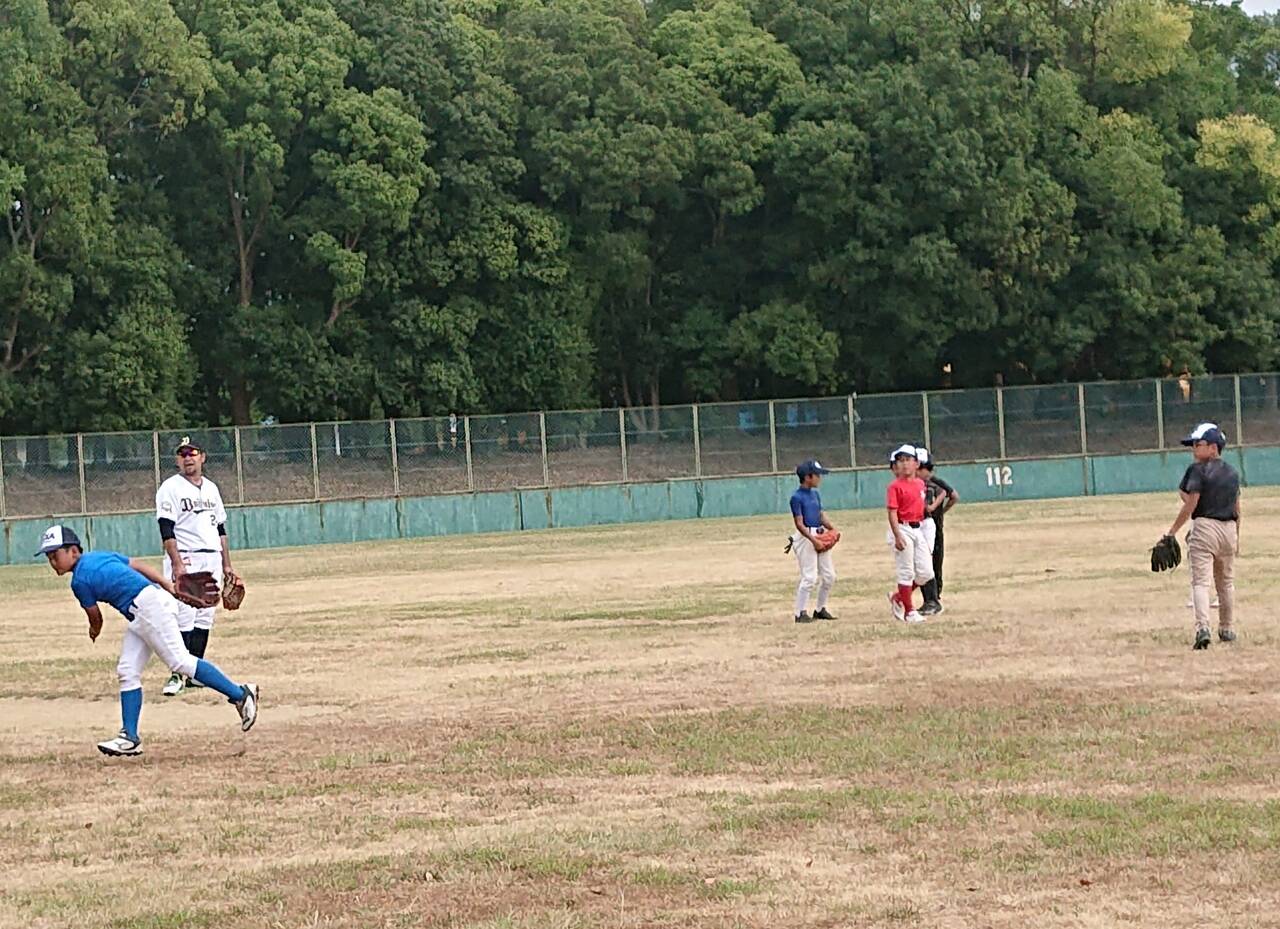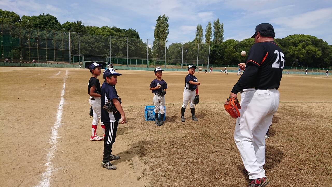 続いては学年ごと4グループに分かれて、コーチ陣による投球指導、内野守備指導、外野守備指導、走塁指導を受けていきます。