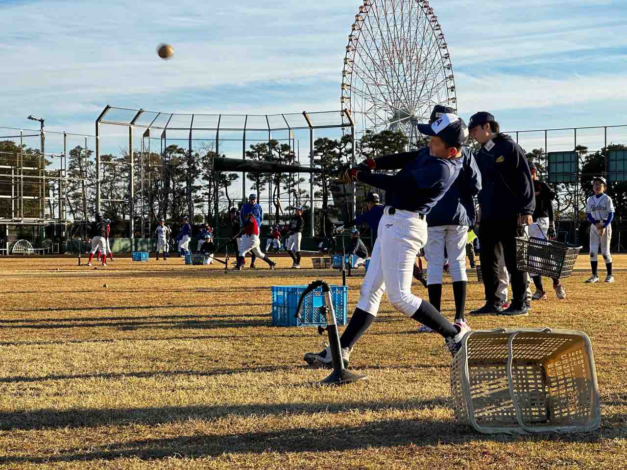 西森コーチから、とにかく「遠くに飛ばす」これを意識してやろう!と教わり、一生懸命 日の丸のあたりを目掛けてスイング!