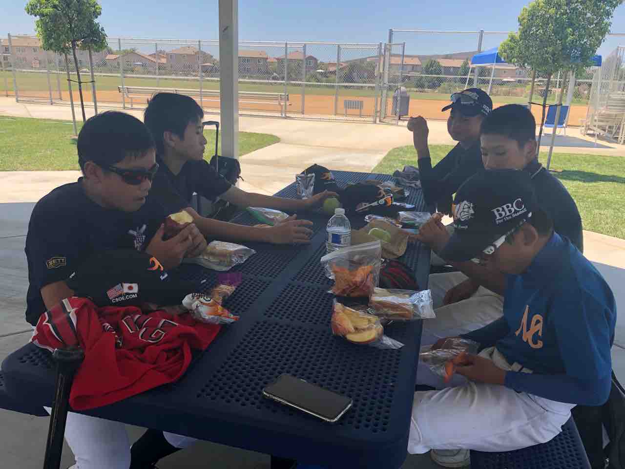 途中でアメリカチームからピザの差し入れが!!みんなで試合をしながらいただきます~Thank you☆