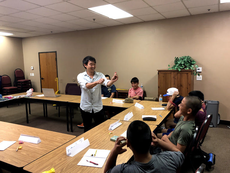 英語を使ったゲームをチーム対抗で行いました!今日はなんと3チームが1勝ずつで引き分けに。最後はまさかのにらめっこで勝敗を決めました笑
