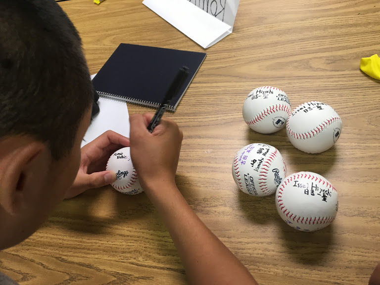 日本語と英語で選手全員の名前が入ったボール。アメリカ人選手には大好評です!