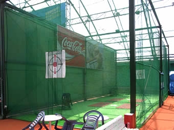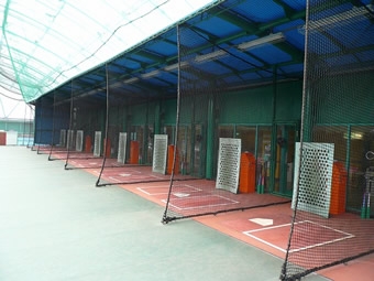 フットサルコート横のバッティングセンターを利用して、打撃レッスンを行います。雨天による休校はありません。