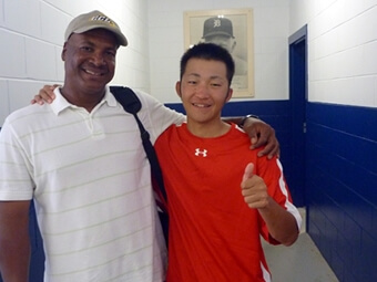 高2の夏にアメリカ・ロサンゼルスに1週間の短期留学に行ったのですが、その時に指導してくれたコーチがロッテ・オリオンズ(現千葉ロッテマリーンズ)で活躍したマイク・ディアズさんでした。日本人である僕をすごく可愛がってくれて、日米の指導の違いをとても分かりやすく教えてくれました。マイクコーチはロサンゼルスでサマーリーグ(=アマチュア教育リーグ)の監督をしていて、「俺がお前をプロにしてやる!来年の夏は俺のチームでプレーするんだ!」と言われたのがきっかけでした。僕もコーチから教えてもらった途端、打撃も球速も驚くほどアップしたので、「このコーチなら間違いない!」と思い監督と「仮契約」を交わして帰国しました。