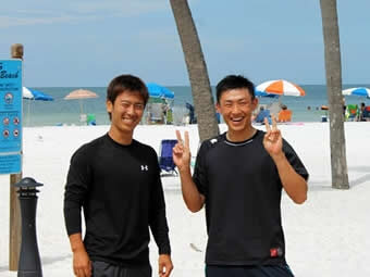 大学卒業後にアメリカでプレーしたいという気持ちがありましたので、夏休みの間に一度「視察」を兼ねて本場の野球を体験することを決めました。出発までの期間は、BBCからもらったメジャーリーグ公認球で投げ込みをしたり、筋力トレーニングなどを続けモチベーションを上げました。しかし、実際のアメリカ野球はイメージと違って、とても基本に忠実な指導方法でした。また、ボールに最大限のパワーを伝えるために「キャッチャーに向かって行く」というスタイルは、日本で学ばなかった指導理論でした。ピッチングだけでなくチューブエクササイズやウェイトトレーニングも充実していました。重い負荷でガツガツと追いこんでいるイメージがありましたが、怪我の予防を第一に考えて、安全に配慮していることが意外な発見でした。「絶対アメリカでプレーする!」という確認ができたので、これからは野球だけでなく英語の勉強も頑張ります!
